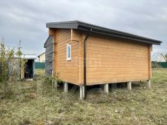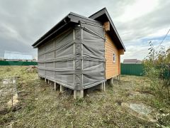Дом построен в 2023 году (предполагался гостевым или баня) из клееного бруса на железобетонно свайном фундаменте.