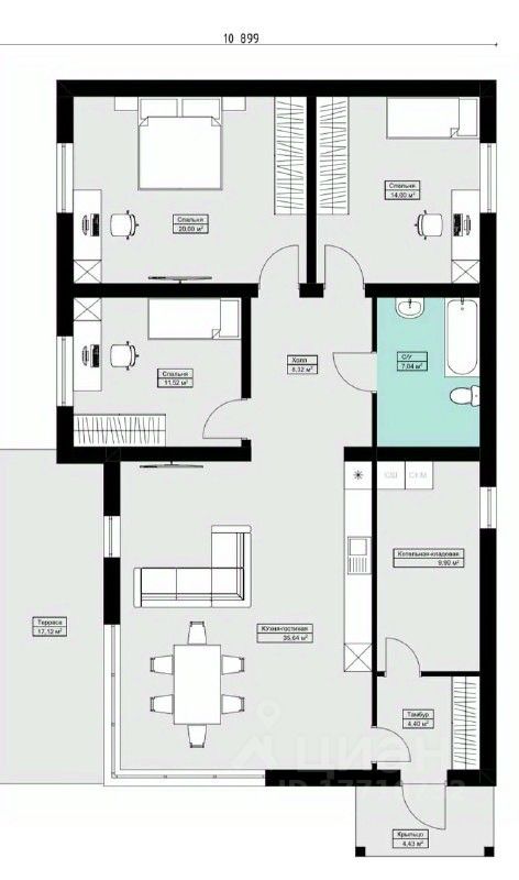 — Общая площадь: 132м²
