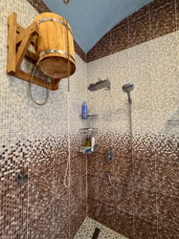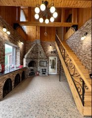 Дом 444 м². Постройка 2015 года из блоков толщиной 400, утепленный, снаружи облицованный натуральным деревом .