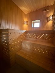 Коммуникации: газ, электричество 15 кВт(сельский тариф), скважина, центральная канализация, 5 мощных кондиционеров, система видеоналюдения, система охраны.