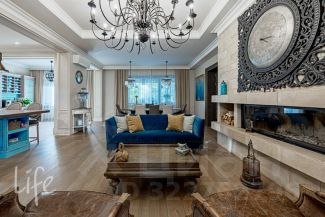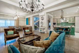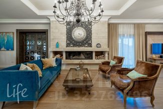 Лот 18174. Дом под ключ 818 кв.м. на участке 24.90 соток. Количество спален: 5. Коттеджный посёлок "Millennium Park", Новорижское шоссе, 19 км от МКАД. Участок правильной прямоугольной формы, с красивым ландшафтным дизайном. Газон, декоративные деревья и кустарники, искусственный прудик, ротонда, детская площадка. На территории расположен гараж на два автомобиля, с подзарядкой для электромобиля. Элитный коттеджный поселок "Миллениум Парк". Уютный жилой дом, полностью под ключ, меблирован и оборудован всей необходимой бытовой техникой. В стиле шале. Красивый интерьер в мягких нюдовых тонах, со вкусом подобрана мебель и аксессуары. Особенно хочется отметить предметы декора, украшающие дом. Гостиная привлекает внимание уютным дровяным камином, идеальное место для проведения зимних вечеров. Удобная планировка с пятью спальнями, гостиной подойдет для большой дружной семьи, а зона СПА скрасит досуг. Есть помещения для обслуживающего персонала. Все центральные коммуникации. Крупнейший поселок класса de luxe Millennium Park эксклюзивный проект, образец аристократизма, эстетики и комфорта загородной жизни. Неповторимый колорит образу Millennium Park придает система искусственных водных каналов, ручьев и прудов, навевая воспоминания о Венеции. Планировка элитного поселка продумана до мелочей и отличается оригинальными решениями. Здесь проложены искусственные водные каналы шириной до 12 метров общей протяженностью более пяти километров. В поселке разбито пять тематических парков, площадь которых превышает 30 гектаров. Между ними проложены пешеходные и велосипедные дорожки. В поселке богатейшая инфраструктура: рестораны, кафе, магазины, кинотеатр, детский клуб, бассейн, SPA-центр и спортивно-развлекательный центр с крытыми кортами для игры в теннис и сквош. В зонах отдыха располагаются детские игровые комплексы и спортивные площадки. Планировка дома: 1 этаж: прихожая, гардеробная, гостиная с камином, кухня-столовая, с/у, спальня с с/у, гардеробная, детская игровая, холл, постирочная, котельная, кладовая, комната персонала, патио. 2 этаж: спальня с гардеробной и с/у, две спальни с гардеробными, еще одна спальня, с/у, СПА-зона с сауной, джакузи, хаммамом, душевой и комнатой отдыха. Мансарда: кабинет, домашний кинотеатр.