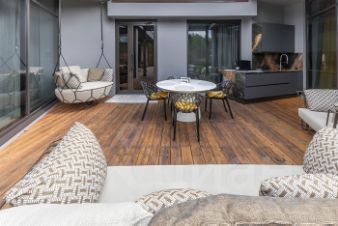 - Пристроенная веранда с раздвигающейся крышей — 35 кв. м, оборудованная как полноценная студия.
