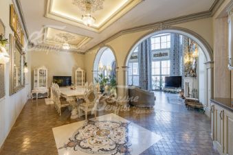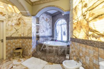 Код объекта в БД Агентства: 134-127. Искра к/п. Городской дом в окружении развитой инфраструктуры и с отличной транспортной доступностью. Возможно в РАССРОЧКУ до 1 года. Выполнен по авторскому проекту в классическом стиле (снаружи - в английском, внутри - с элементами стилей неоготика и барокко) в стародачном месте. Выполнен дизайнерский ремонт с применением дорогих натуральных материалов. Высокие потолки. 2-хсветная гостиная, СПА-зона с бассейном, отдельные женская и мужская гардеробные в мастер-спальне, 3 большие видовые крытые террасы, квартира для персонала. Большое количество витражей, лепнины, портал камина из белого мрамора. Дом полностью обставлен эксклюзивной антикварной и современной мебелью в единой стилистике. Прилесной участок с красивым ландшафтом, множеством деревьев, садом и цветами. Год постройки: 2014. отделка в 2017 г.. Материал стен: газобетон 300 мм (плотность D500 "Masa Henke") + утеплитель Пеноплекс 50 мм. Облицовка стен: плитка из архитектурного бетона темно-коричневого цвета, со светлым декором (наличники, рустовка, карнизы). Стадия готовности: меблирован. Описание внутренней отделки: выполнена дизайнерская отделка с применением дорогих натуральных материалов: мрамор, травертин, оникс, массив дуба, инженерная доска. Дизайн в стиле неоготика (вдохновлен европейскими замками). На стены нанесена декоративная штукатурка, поклеены дорогие обои, декор - лепнина из гипса, расписывалась художником в течение полугода. Санузел мастер-спальни отделан ониксом с подсветкой. Спа-зона - дорогая арабская 3D плитка. В детских комнатах порталы из гималайской соли с подсветкой, фрески. Витраж на потолке в гостиной выполнен на заказ по индивидуальному проекту в технике Тиффани (стекло-олово запекание). Купол диаметром 4 м. В лестничном холле еще 3 антикварных витража. Портал камина из белого мрамора - копия камина одного из замков в Европе. Столярка массив бука. Бассейн с противотоком. На стенах витражи, на потолке имитация звездного неба. Парная: канадский кедр, абаш, панно из гималайской соли. На полу наборные мраморные панно из нескольких видов мрамора, а также малахита, азула, оникса и еще более 10 разновидностей камня. Выполнены на заказ по индивидуальному проекту. Также пол отделан мрамором, травертином, инженерной доской, ониксом (в санузле). Бетонная лестница шириной 2,1-1,5 м, ступени отделаны 2-мя видами мрамора: Crema Marfil и Emperador Light, художественная ковка ограждения. Подвесные потолки сложной формы с подсветкой. Кессоны, витражи, фрески, несколько видов подсветки, сложные ажурные лепные формы. Установлена импортная сантехника премиальных брендов Old England, Cezares в классическом стиле. Теплые полы водяные везде под плиткой и в санузлах. Электрика Legrand. Конвекторы внутрипольные, стальные панельные. Межкомнатные двери из массива бука, выполнены по индивидуальным проектам. Подоконники выполнены из мрамора Crema Marfil.. Инженерное обеспечение: в доме установлены котел Buderus, бойлер Styleboler 300 л и комплексная система очистки воды. Естественная вентиляция. Выполнен проект и разводка под видеонаблюдение и пожарную сигнализацию.. Мебель, оборудование: в мастер-спальне и детских комнатах антикварная мебель от итальянского производителя элитного сегмента SILIK. Также есть мебель от американского бренда CHESTER из кожи бизона. Полностью оборудованные гардеробные. Антикв