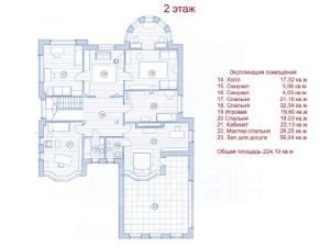 На 2 этаже: мастер-спальня с ванной, игровая комната с двумя спальнями, универсальная спальня, кабинет, зал для досуга.