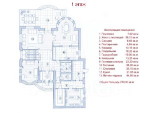 На 1 этаже: просторная кухня-столовая, гостиная с выходом на летнюю террасу, гостевая спальня, гардеробная, постирочная, гладильная и котельная с отдельным входом.