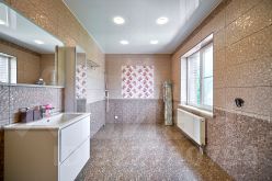 В гостиной, общей площадь. 65 кв. м выход на балкон-террасу и для дополнительной освещенности в комнате, выстроен эркер.
