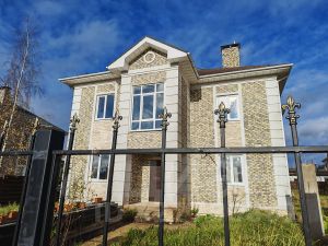 Дом стоит на ленточном фундаменте, построен из керамоблоков (щелевой кирпич), утепление по фасаду, облицовочный кирпич. Все коммуникации центральные, заведены в дом. Установлен газовый котел и системы отопления, в доме тепло. Все инженерные коммуникации разведены по дому. Обустроена централизованная вентиляция, так же разведена по всем помещениям. Во всех с/у (4шт.) установлены инженерные инсталляции системы слива.