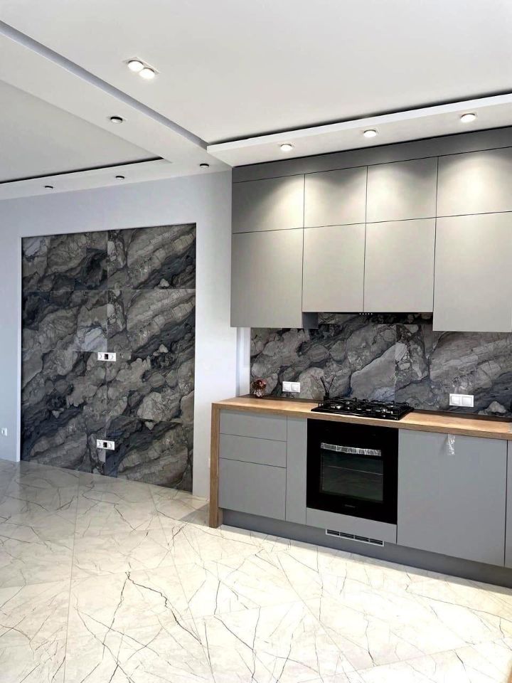 * Кухонный гарнитур с встроенной техникой (духовой шкаф, плита, посудомоечная машина).