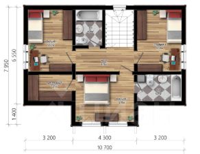 - Второй этаж: 2 спальни, 1 мастер-спальня со своей гардеробной комнатой и санузлом, общий санузел 2-го этажа.