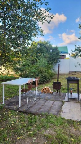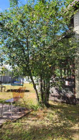 Участок правильной формы с плодовыми деревьями и бытовкой для хранения инвентаря, зона для мангала. Коммуникации: вода- скважина, канализация-септик, электрический котел (отопление разведено по первому этажу), (конвекторы на втором этаже). Возле дома парковка на две машины.