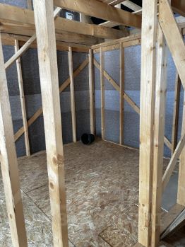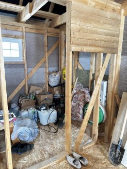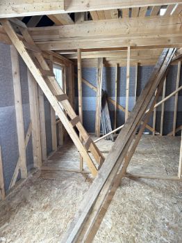 Дом построен в 2022 году. каркасный (сваи). Терраса на первом этаже(входная группа), балкон на втором этаже, дверь сейфовая-входная(с терморазрывом) тёплая. Стеклопакет. Крыша металлочерепица. Водостоки. Внутри, на первом этаже сделаны полы ( черновой вариант) утеплены 150 мм. Балки перекрытия. Стены и крыша натянуты пароизоляцией. Электричество на участке ( щит) с лицевым счётом. Планировка : На первом этаже большая прихожая с планируемой лестницей на второй этаж ( в плане), будущий санузел совместный +техпомещение. Кухня-гостиная. Второй этаж: две спальни. Из меньшей выход на балкон. В торце коридора между спальнями будущий санузел с рукомойником(в плане). Рядом Рогачёвское шоссе в 200 метрах . До ЦКАД 4 километра. До метро Физтех 30 минут на машине, через недавно построенную магистраль Северный обход Лобни. До Лобни 11 километров. Рядом (400 м) с ЖК знаменитая лыжная база Габовская лыжня. Смешанный лес. В 300 метрах от дома место для отдыха с озером. В пешей доступности автобусные остановки. В 5 минутах езды сеть магазинов( Магнит , Пятёрочка, Чижик) и АЗС.