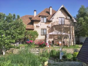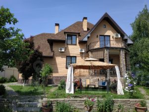 Дом для постоянного проживания, из шлакоблока 400х200х200 мм, с утеплением 50 мм и облицовкой кирпичом (толщина стен 55 см), строил для себя, не на продажу. В доме гараж, камин, второй свет, теплый пол в столовой и санузлах (водяной), стеклопакеты 2-камерные, бронированные, газовый котел (Германия) Будерус 44 кВт (отапливает дом и баню), септик Топас. Станция водоочистки "Экодар". На первом этаже гостиная и обеденная зона 63 м2, гостевая спальня 16 м2, прихожая 8 м2, санузел 6 м2, гараж 32 м2, котельная 9 м2. На полуторном этаже детская 30 м2 и гардеробная 8 м2. На втором этаже холл 14 м2, спальня 23 м2, кабинет 16 м2 и санузел 12 м2.