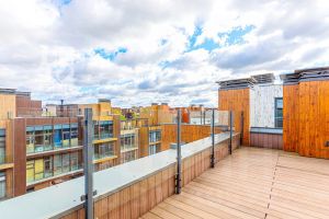 На эксплуатируемой кровле предусмотрено достаточно места для отдыха всей семьей.