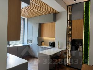 - Кухня сделана полностью на заказ из итальянской смарт-плиты и французского шпона;