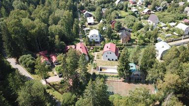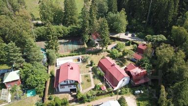 Комплекс состоит из двух домов, для круглогодичного проживания, бани из бревна, дома для управляющего, бильярдной и теннисного корта.