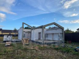 На сегодняшний день готовы два монолитных фундамента с выведенными коммуникациями под воду и канализацию. Сделана дренажная система по периметру обоих фундаментов, с выводом в общую ливнёвку. Готовы стены и армопояс банного комплекса. Закуплены все материалы для строительства первого этажа дома вместе с двумя гаражами.