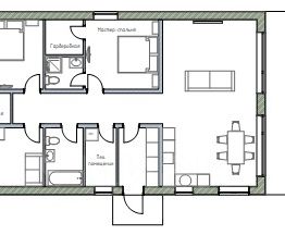 - Кухня-гостиная , мастер-спальня с гардеробной и санузлом, кабинет, спальня с гардеробной, санузел, оборудованная бойлерная, холл, открытое патио