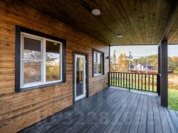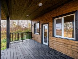 Дом 2 этажа, 102 м2. Три комнаты и просторная кухня-гостиная. Санузлы на обоих этажах. Большая видовая терраса. Каркасная технология из сухой доски с вальцовкой, обработкой согласно всем допускам в нашем климате. Разведено электричество и сантехника.