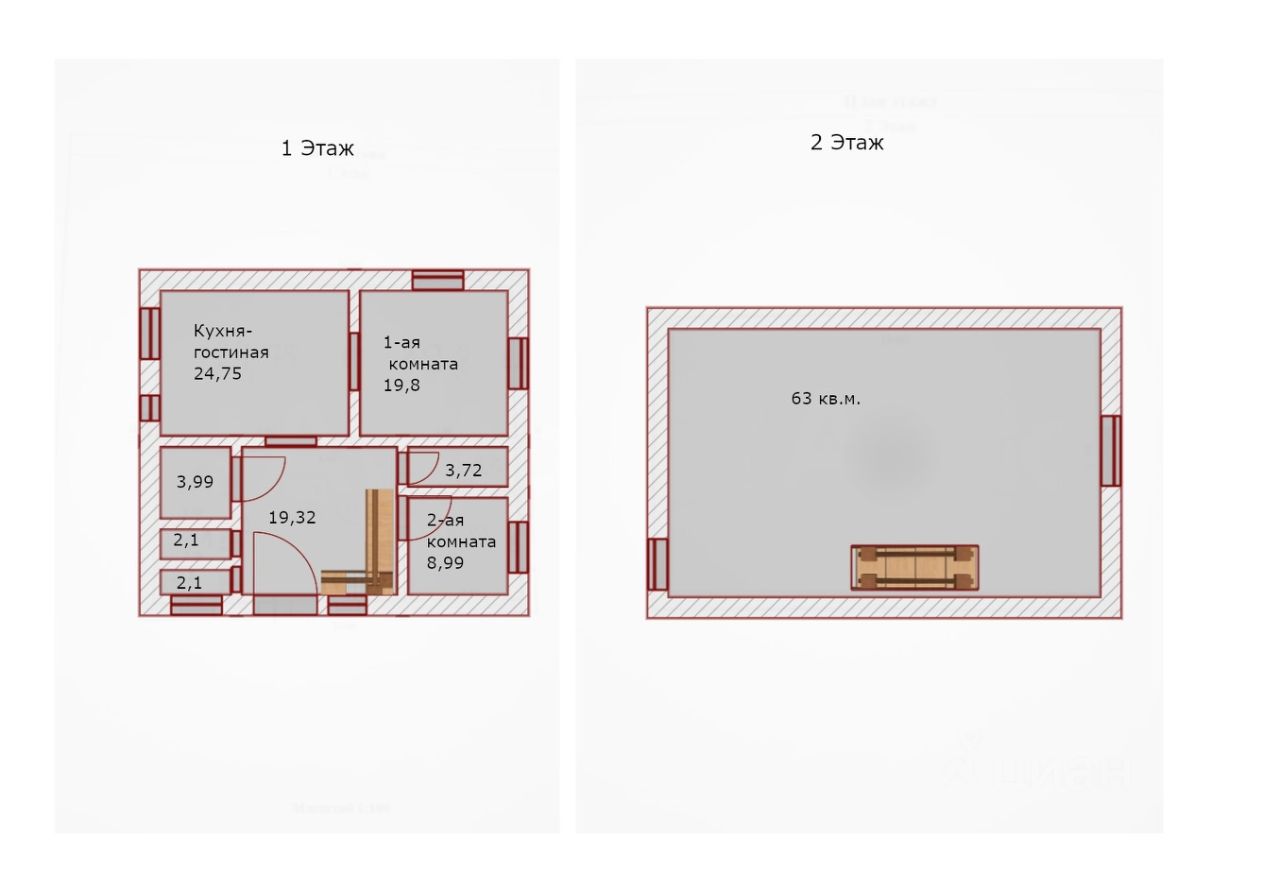 Просторный второй этаж 63 кв.м., где возможно воплощение любых Ваших замыслов и планов, так как второй этаж без отделки.