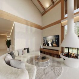 • теплые полы,подвесной камин, система вентиляции и кондиционирования