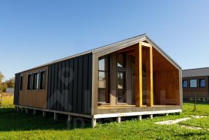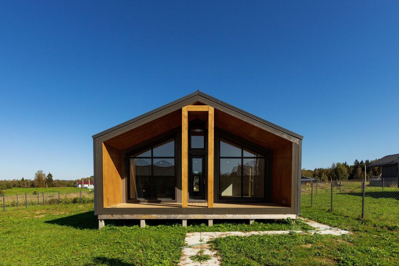 В доме: Кухня-гостиная, 2 спальни, санузел и веранда.