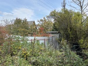 На участке растут цветы, декоративные кустарники, плодовые деревья и кустарники. Участок огорожен забором, есть калитка.
