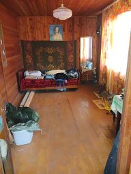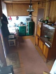 На первом этаже : две изолированные комнаты и кухня. На втором этаже одна большая спальня. В доме требуется косметический ремонт.