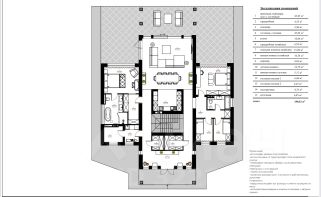 В доме 4 спальни, 2 сан узла, 2 гардероба, постирочная, кабинет, спортзал, большой зал с кухней, кладовая, бойлерная.
