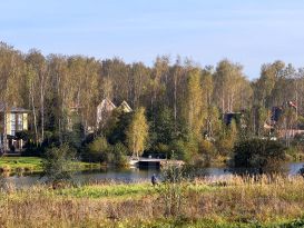 Участок на берегу реки Никажель в новом современной коттеджном посёлке имеющим свой песчаный пляж. Окружен лесным массивом.