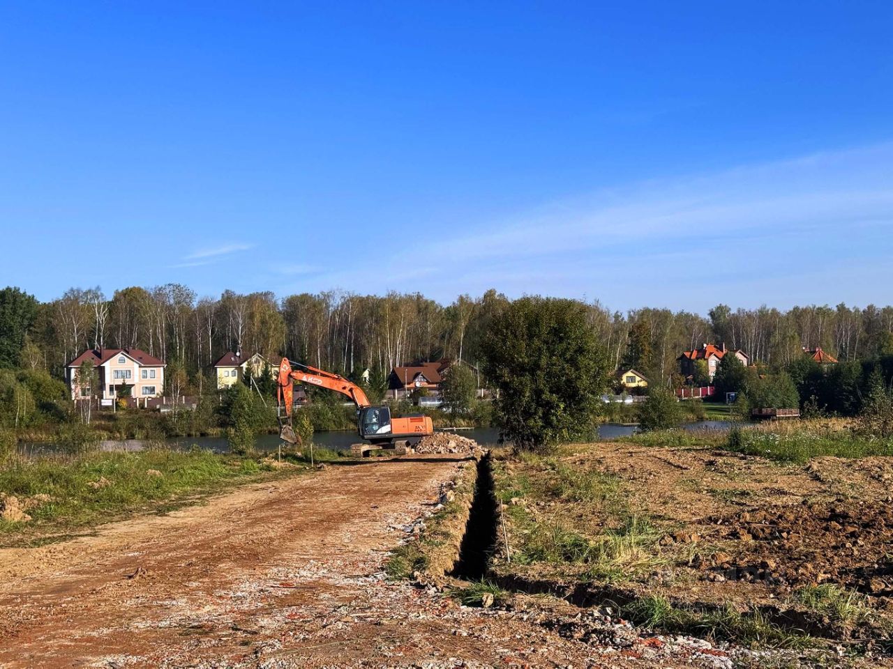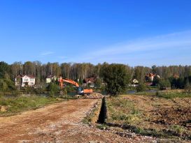Участок на берегу реки Никажель в новом современной коттеджном посёлке имеющим свой песчаный пляж. Окружен лесным массивом.