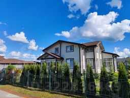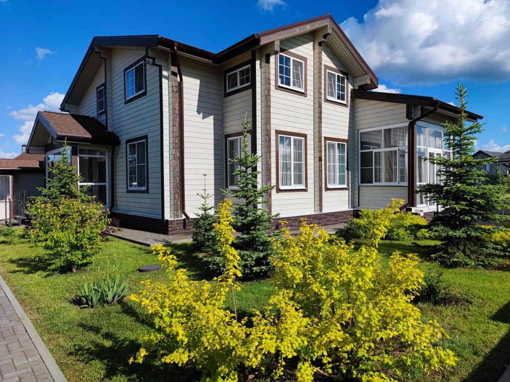 Дом 2-х этажный (2-ой этаж мансардный), деревянный-клееный брус 225*175, общей площадью 190 кв.м, полностью отделанный под ключ и готовый к круглогодичному проживанию. 1-й этаже: гостинная-40 кв.м, кухня-16 кв.м, гостевая комная-14 кв.м, санузел, прихожая, топочная, просторная застекленная веранда 16.кв.м. 2-й этаж: кабинет-14 кв.м, детская комната-16 кв.м, детский санузел, хозяйская спальня-23 кв.м. с просторным саузлом-8 кв.м, гардеробной-8 кв.м, лоджией-4.5 кв.м.