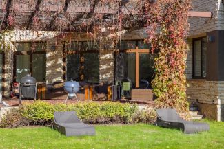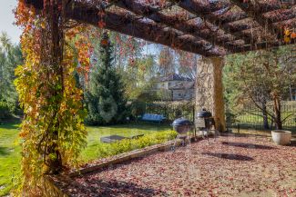 Хочется отметить красивый участок с ландшафтным дизайном, на котором расположены не только реликтовые сосны, но и плодовые деревья.