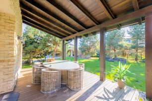 - на первом этаже расположена уютная гостиная, просторный холл, функциональная кухня с выходом на террасу, 2 гардеробные, с/у, кабинет, котельная.