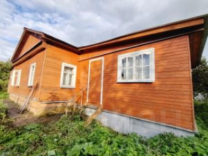 Дом 6*6 сруб (половина избы-пятистенки - на фото именно то, что продается) + терраса 20 метров + сарай 12 м. Сруб 6*6 1905 года постройки. В 2010 году делали кап.ремонт. Под домом новые нижние венцы, новый ленточный фундамент, под террасой и сараем - фундамент столбчатый. Дом высокий и крепкий, на крыше свежее железо. Внутри дом и террасса обиты вагонкой. Отопление электрообогреватели, вода колодец с отличной водой, вода в дом не заведена, туалет типа сортир на участке. Ширина участка 12 метров, можно спокойно начинать строить новый дом, если будет желание.