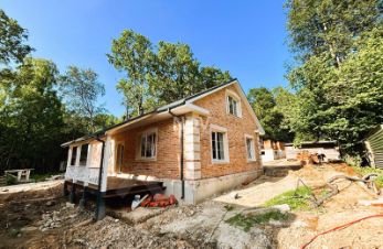 Все коммуникации заведены в дом. Черновая отделка.