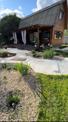 Участок ровный, ухоженный, на нем растет газон и плодовые деревья. Парковочные места на 2 автомобиля. Так же на территории участка есть небольшая бытовка.
