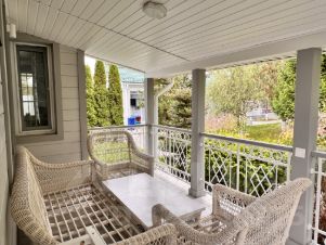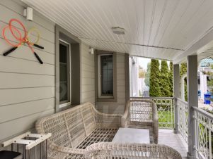 Уютная летняя терраса с автоматическими прозрачными рольставнями приглашает на неспешные завтраки и закаты у воды.
