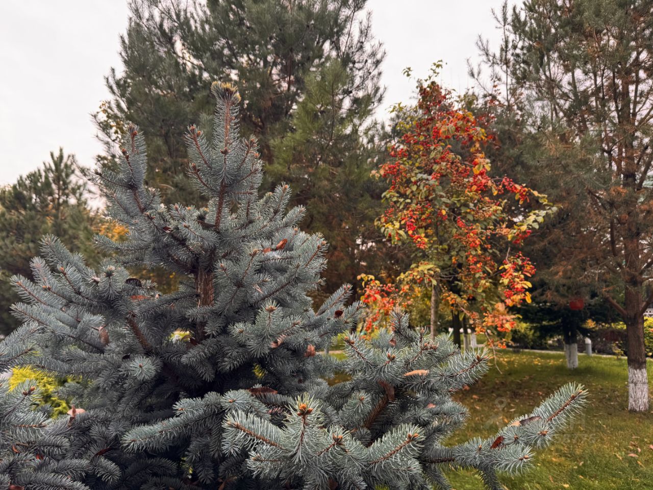 Просторный участок утопает в зелени, высажено очень много различных декоративных деревьев и кустарников, есть редкие экземпляры, все очень гармонично соседствует друг с другом — вишня, черешня, груши, различные сорта кленов, "драконовое" дерево, туи, гортензии, голубые ели и сосны создают ощущение ботанического сада. Садовые деревья плодоносят регулярно.