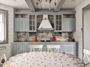 Дополняет дом хозблок и просторный навес для автомобилей или техники.