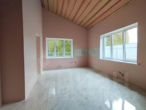 В доме 3 спальни, большая кухня-гостиная, просторная прихожая, котельная, раздельный санузел (в ванной комнате душевая и оставлено место для установки ванны) и шикарная терасса с видом на лес.