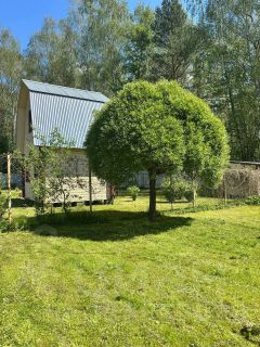 На участке есть плодовые деревья, цветы, полянка из газона. Организована мангальная зона с мангалом и качельками для отдыха (все остается будущим хозяевам).