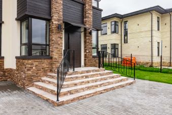 Участок оформлен с учетом ландшафтного дизайна: есть газон и перепад высот, создавая атмосферу спокойствия и уединения. Парадная часть двора вымощена брусчаткой.
