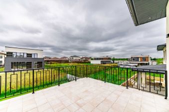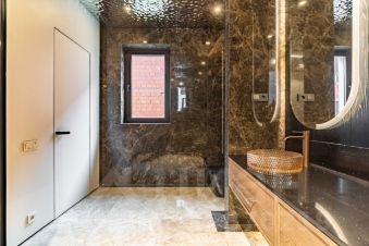 Первый этаж впечатляет просторной кухней-гостиной , создающим атмосферу тепла и уюта. Из этой зоны предусмотрен выход на крытую террасу, где можно наслаждаться свежим воздухом. Также на первом этаже находятся кабинет, гостевой санузел, гардеробная и котельная.