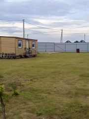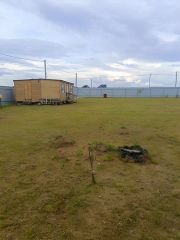 — Огорожен с двух сторон забором из проф листа, есть въездные ворота