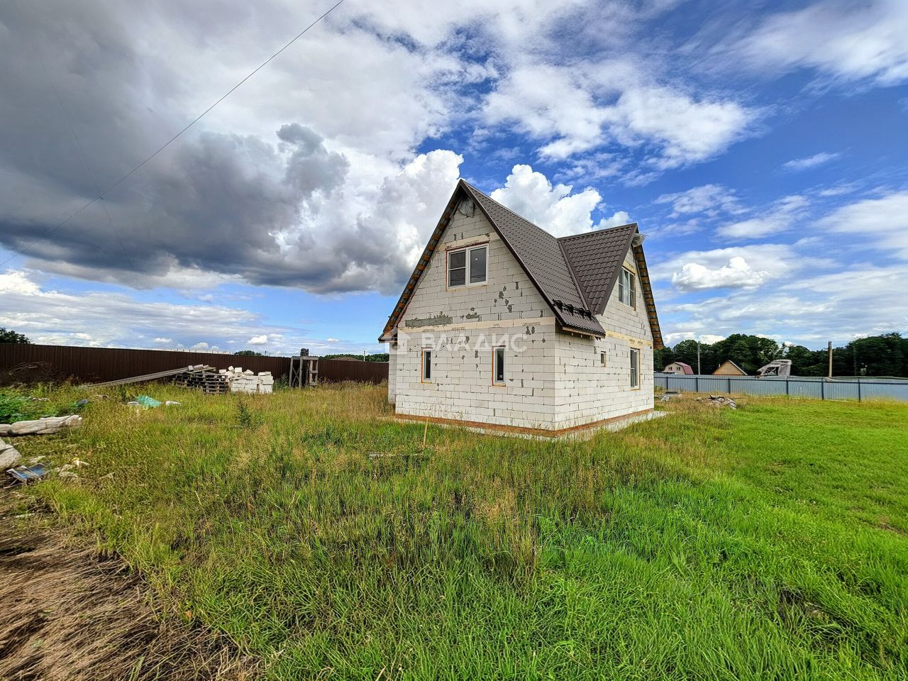 - Материал постройки: блочный. Cтены каждыe тpи ряда усилeны aрматуpoй пo вcей плoщади. Фронтоны тaк жe усилены.