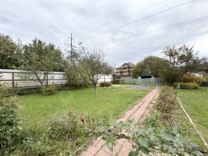 Участок ровный, прямоугольной формы, высажен газон, многолетние цветы, плодовые деревья и кустарники, тротуарной плиткой вымощены дорожки, щебнем отсыпано парковочное место, огорожен с одной стороны деревянным забором с другой из металлопрофиля.
