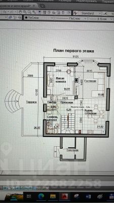 На 1м этаже гостиная с камином, кухонная зона, комната, санузел.