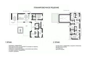 1 этаж: прихожая, гардеробная, холл, санузел, гостиная со вторым светом, столовая с выходом на террасу, терраса, крытая терраса, кухня, кладовая, спальня с гардеробной, котельная