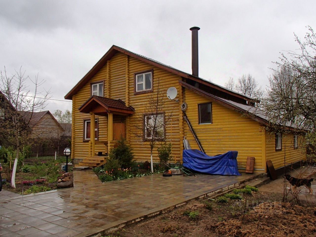 Просторный двухэтажный дом из бревна, площадью 200 кв.м., готов к проживанию. Здесь уже подключены все необходимые коммуникации: газ, вода и электричество.