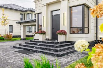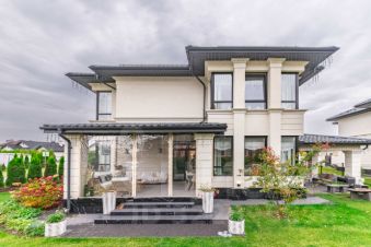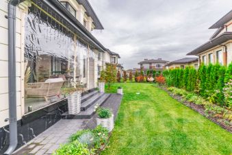 Участок оформлен в современном стиле ландшафтного дизайна, а для отдыха на свежем воздухе предусмотрена уютная меблированная терраса.